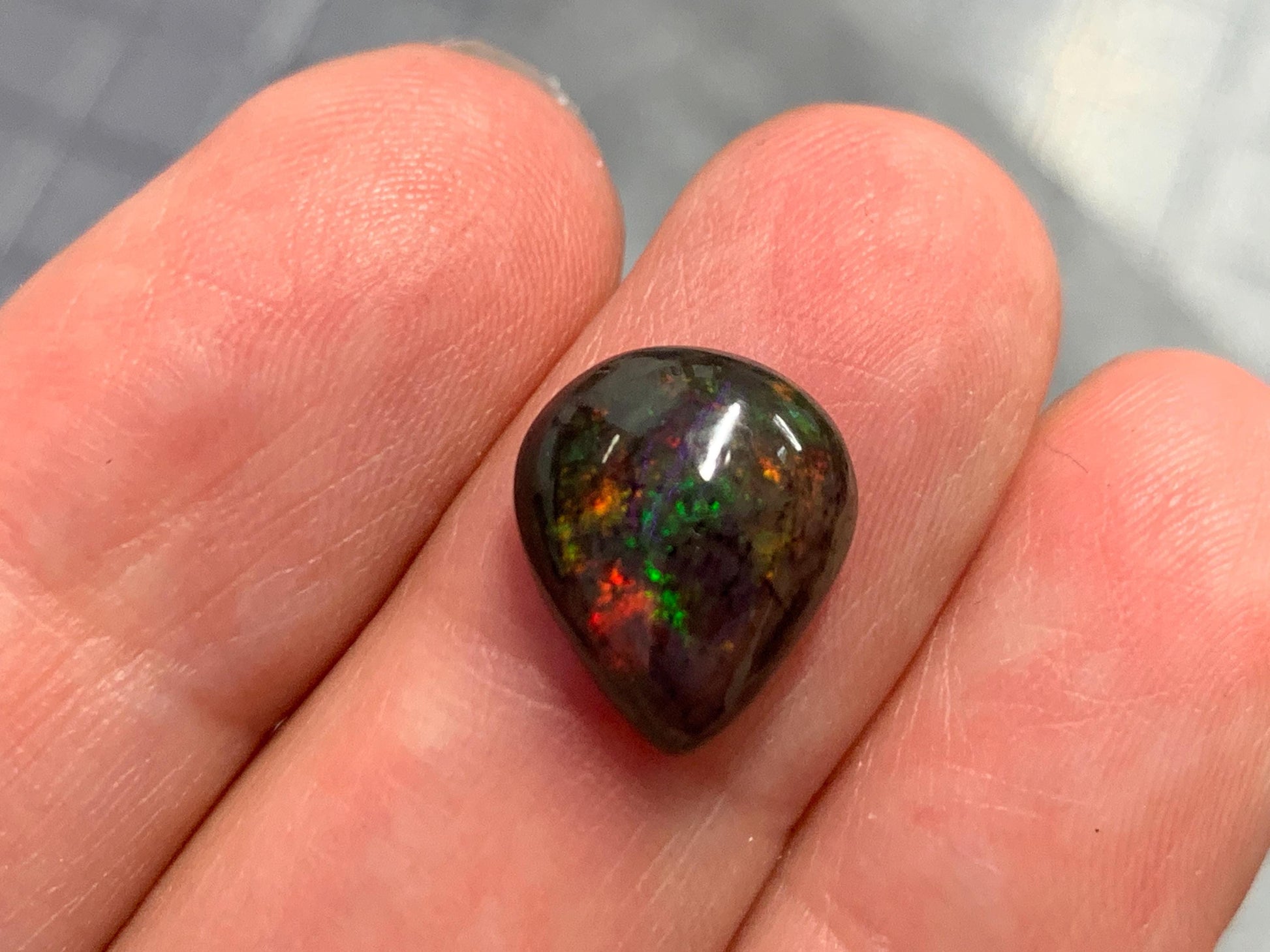 Black Ethiopian Opal pear 10x12x4mm cabochon