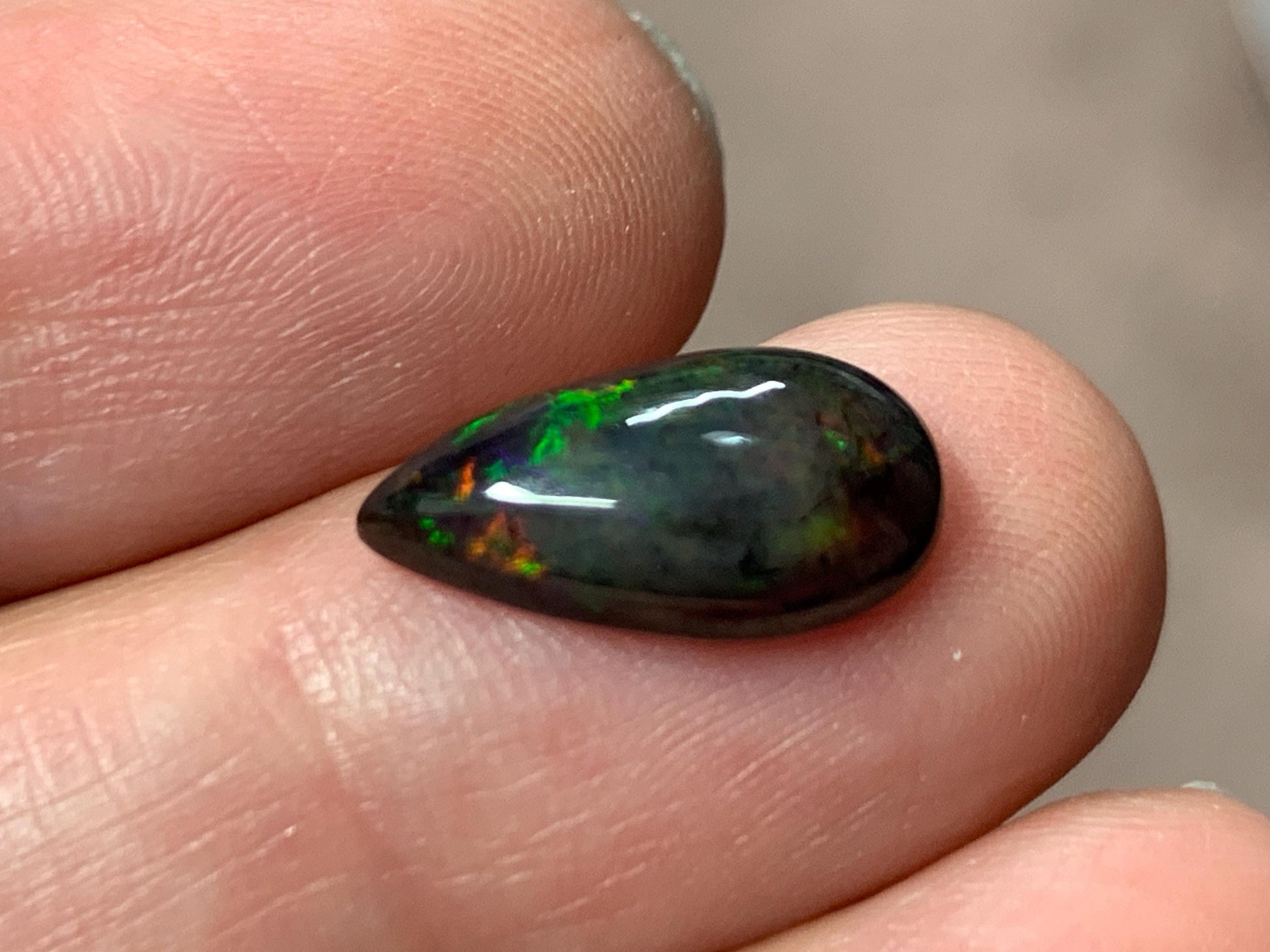 Black Ethiopian Opal pear 7x14x4mm cabochon