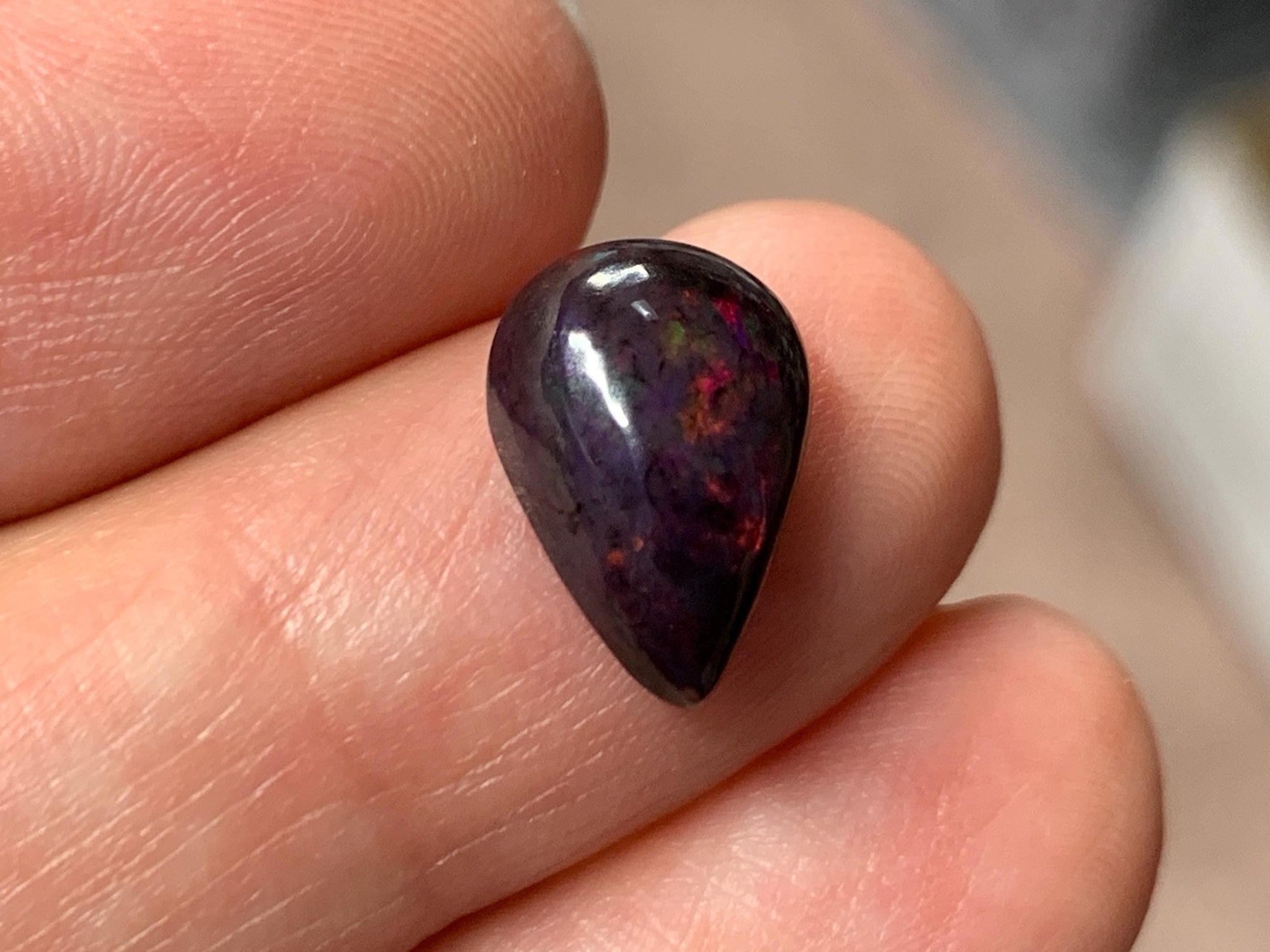 Black Ethiopian Opal pear 9x12x5mm cabochon