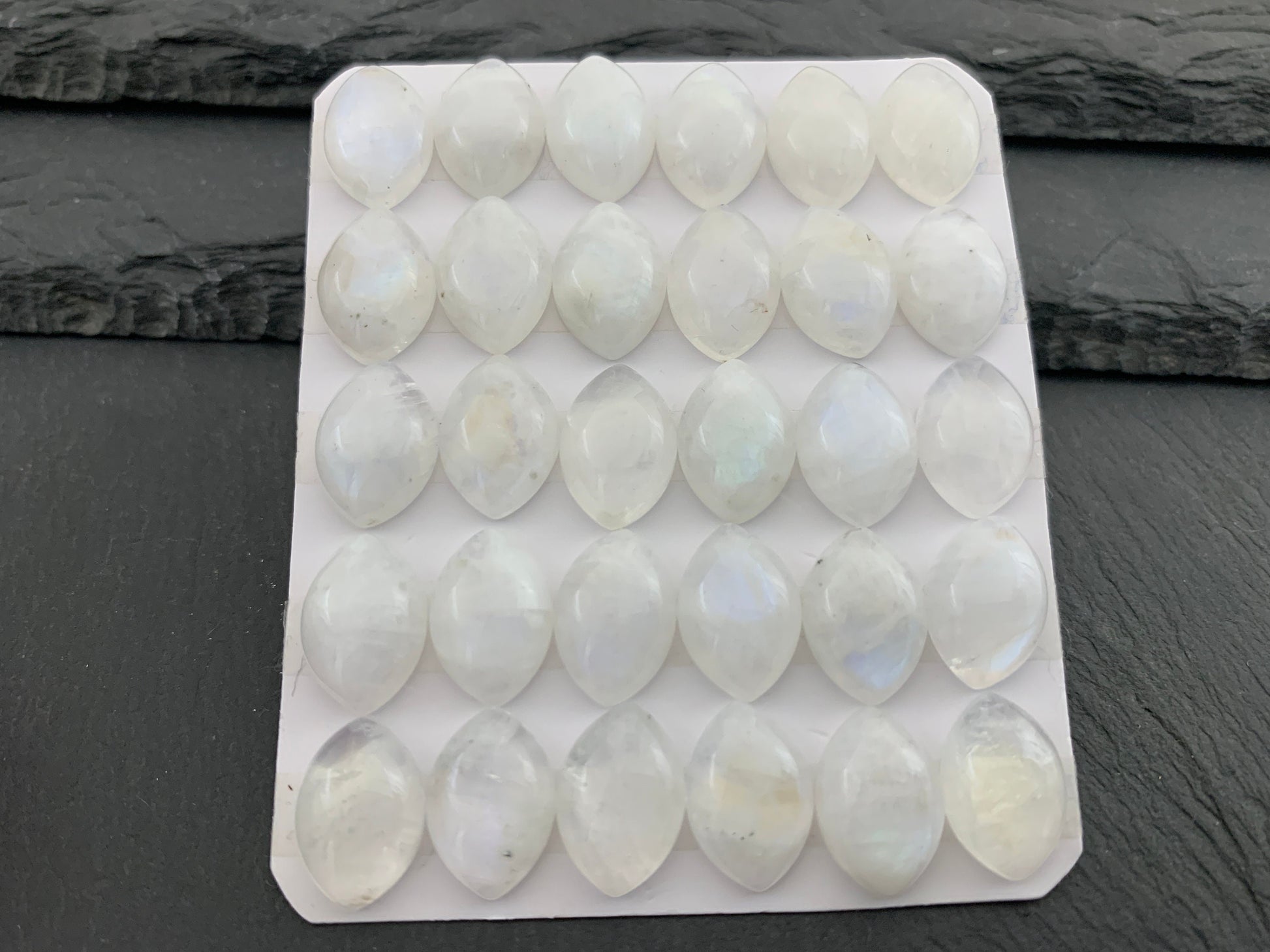 Natural Rainbow Moonstone Cabochon: Calibrated Marquise 10x14mm