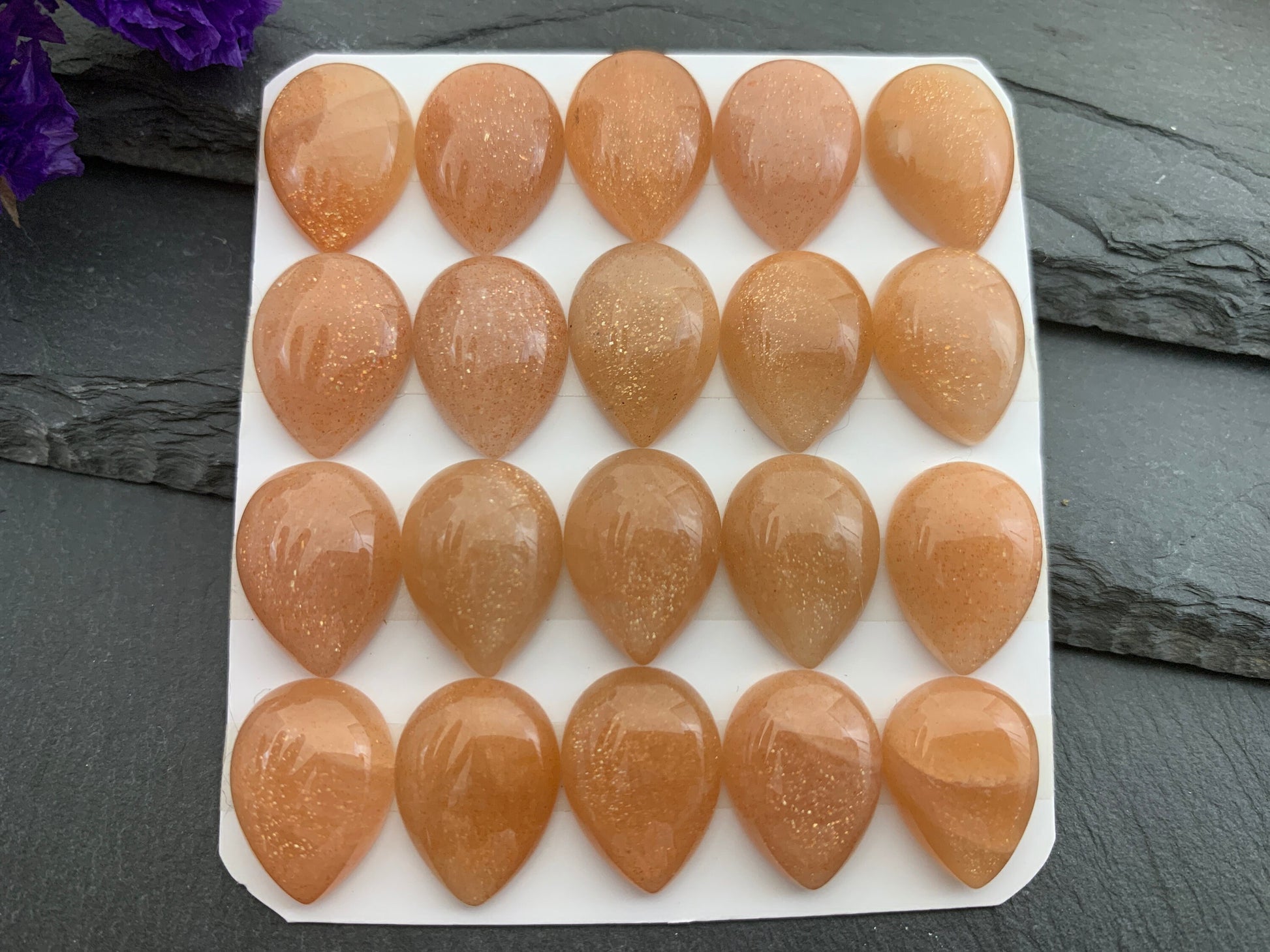 Natural Sunstone Pear Cabochon: GoldSand Gemstone (12x16mm)