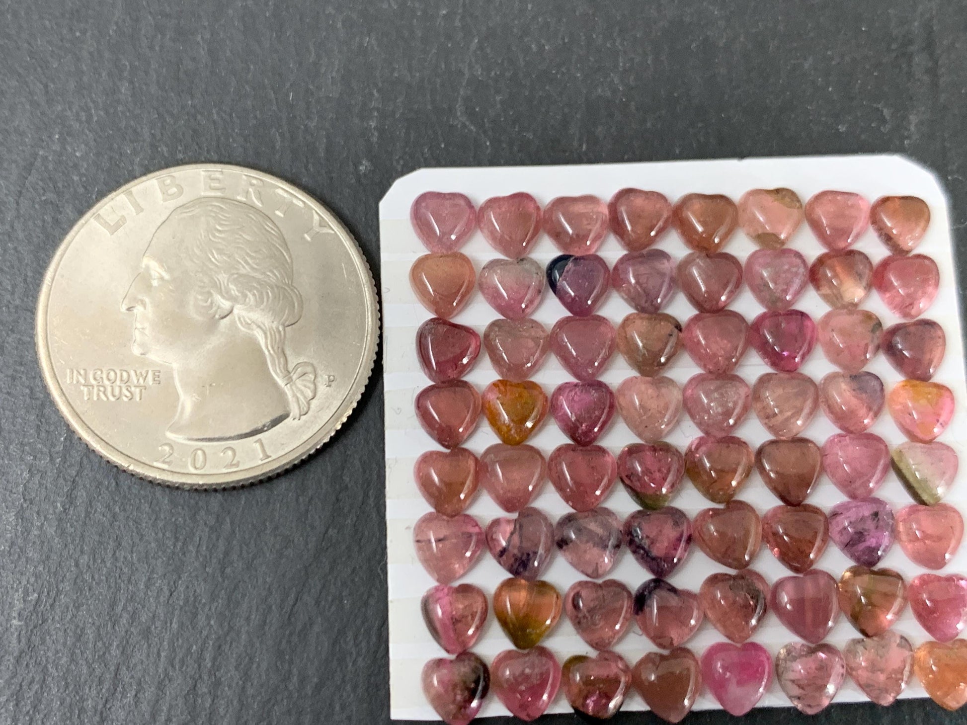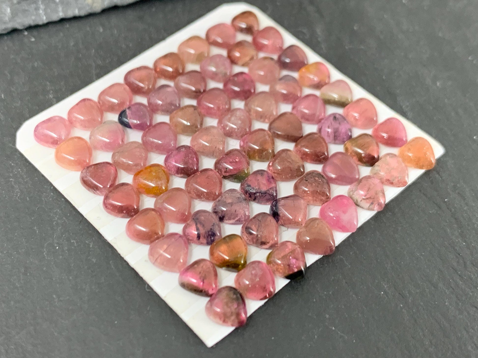 Pink Tourmaline heart 5mm cabochon - Calibrated acbochons