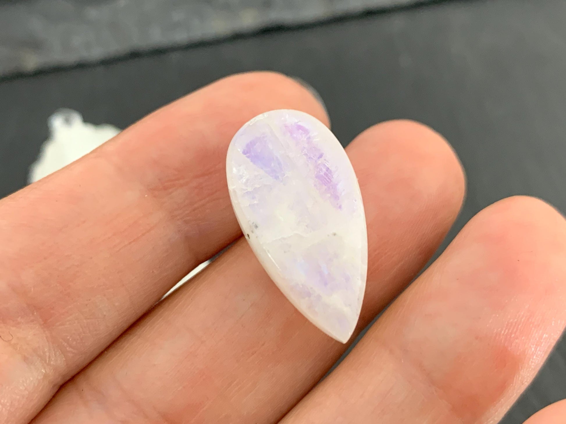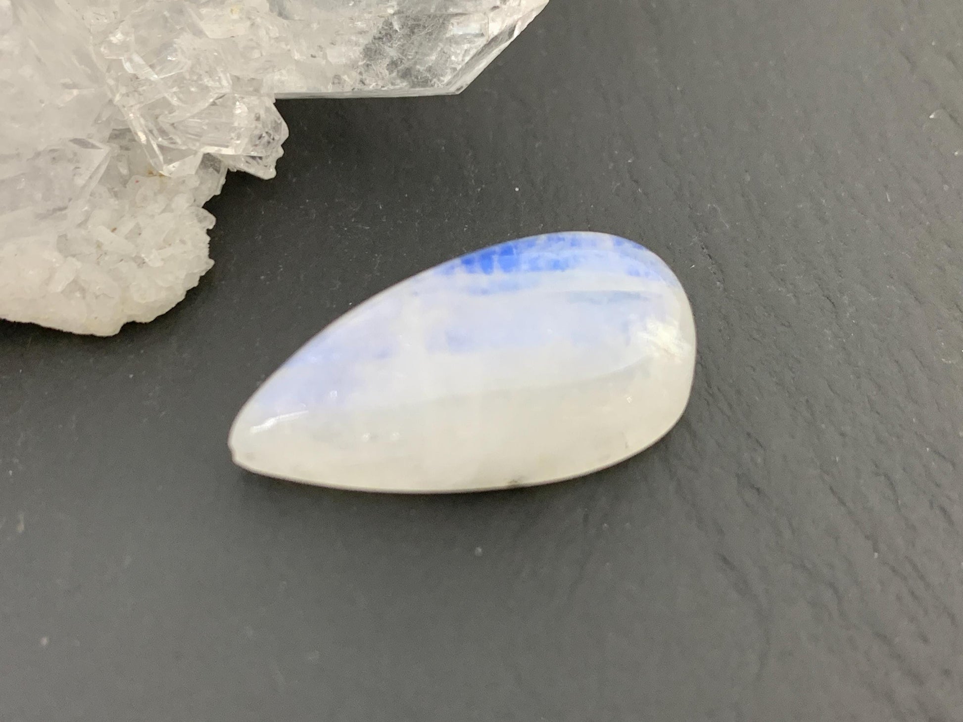 Rainbow Moonstone pear 23x12x7mm cabochon
