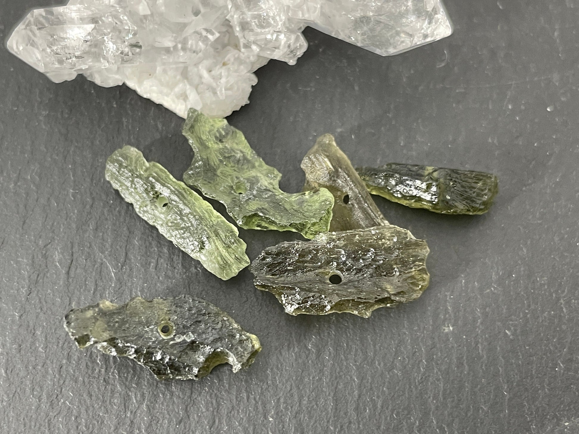 Raw Moldavite beads 14-19mm long - of of 6 beads