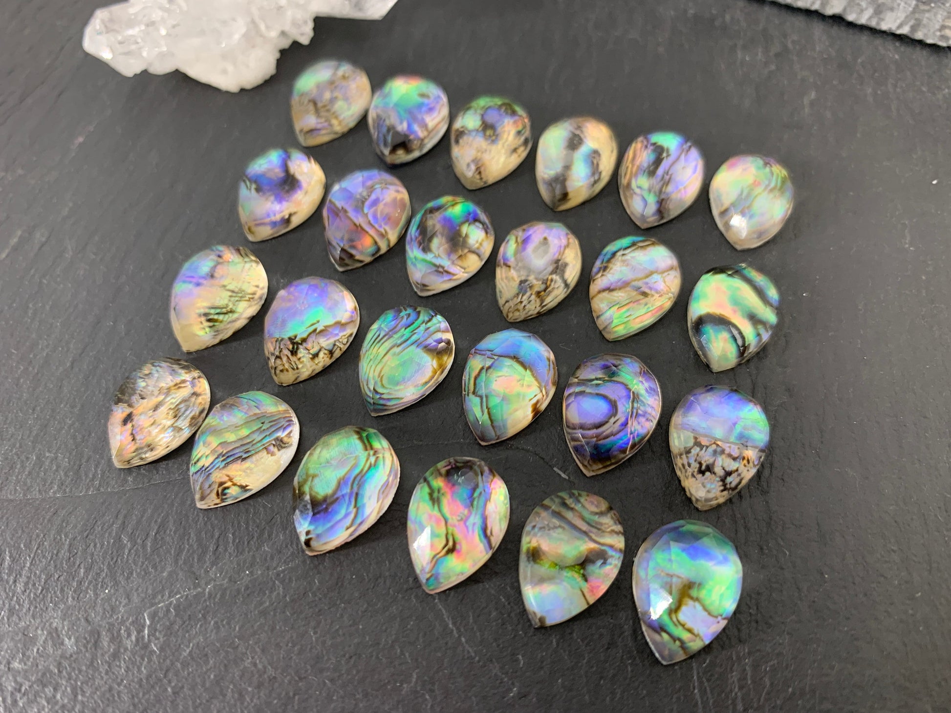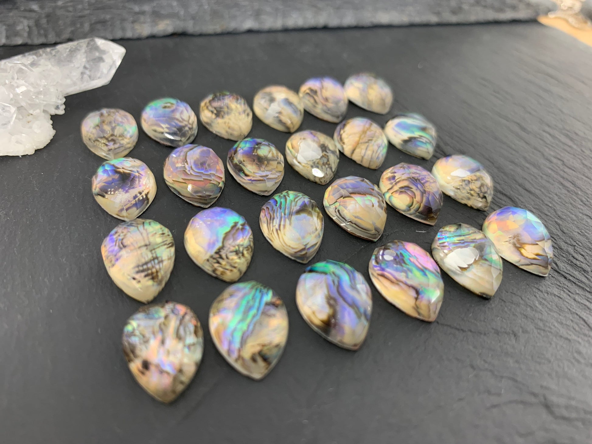 Rose Cut Abalone Crystal Doublet Pear 10x14mm Cabochon