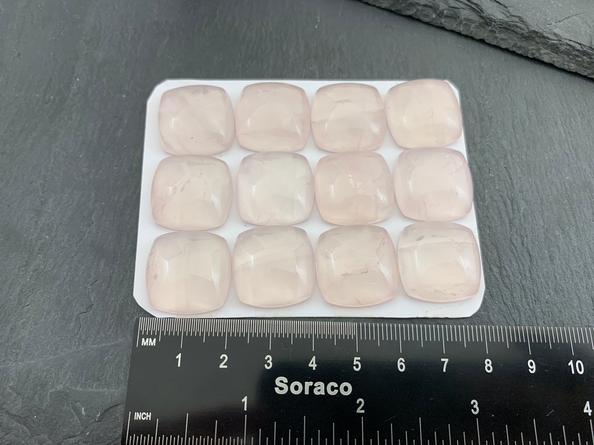 Rose Quartz square cushion 20mm cabochon - Calibrated cabochons