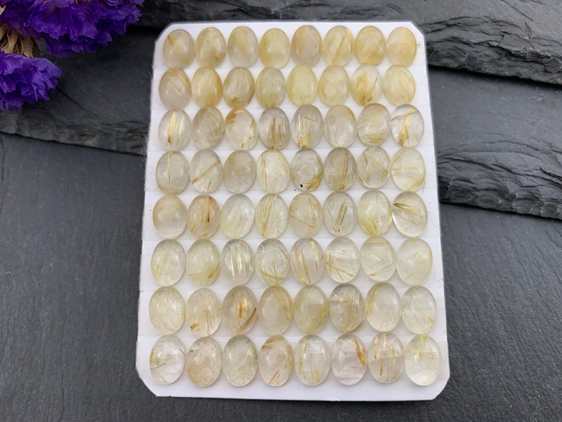 Gold Rutilated Quartz oval 6x8mm cabochon - Calibrated cabochons