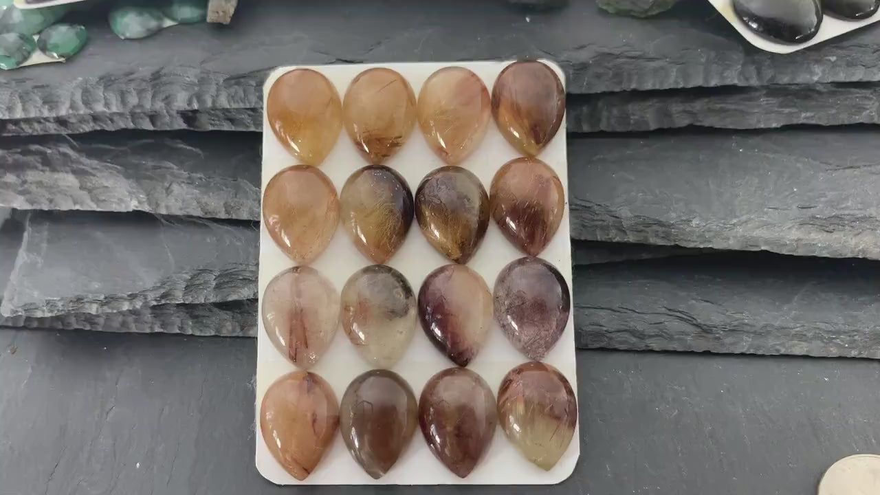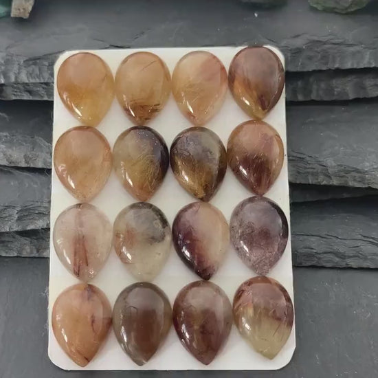 Rutilated Quartz pear 15x20mm Cabochon - Calibrated cabochons
