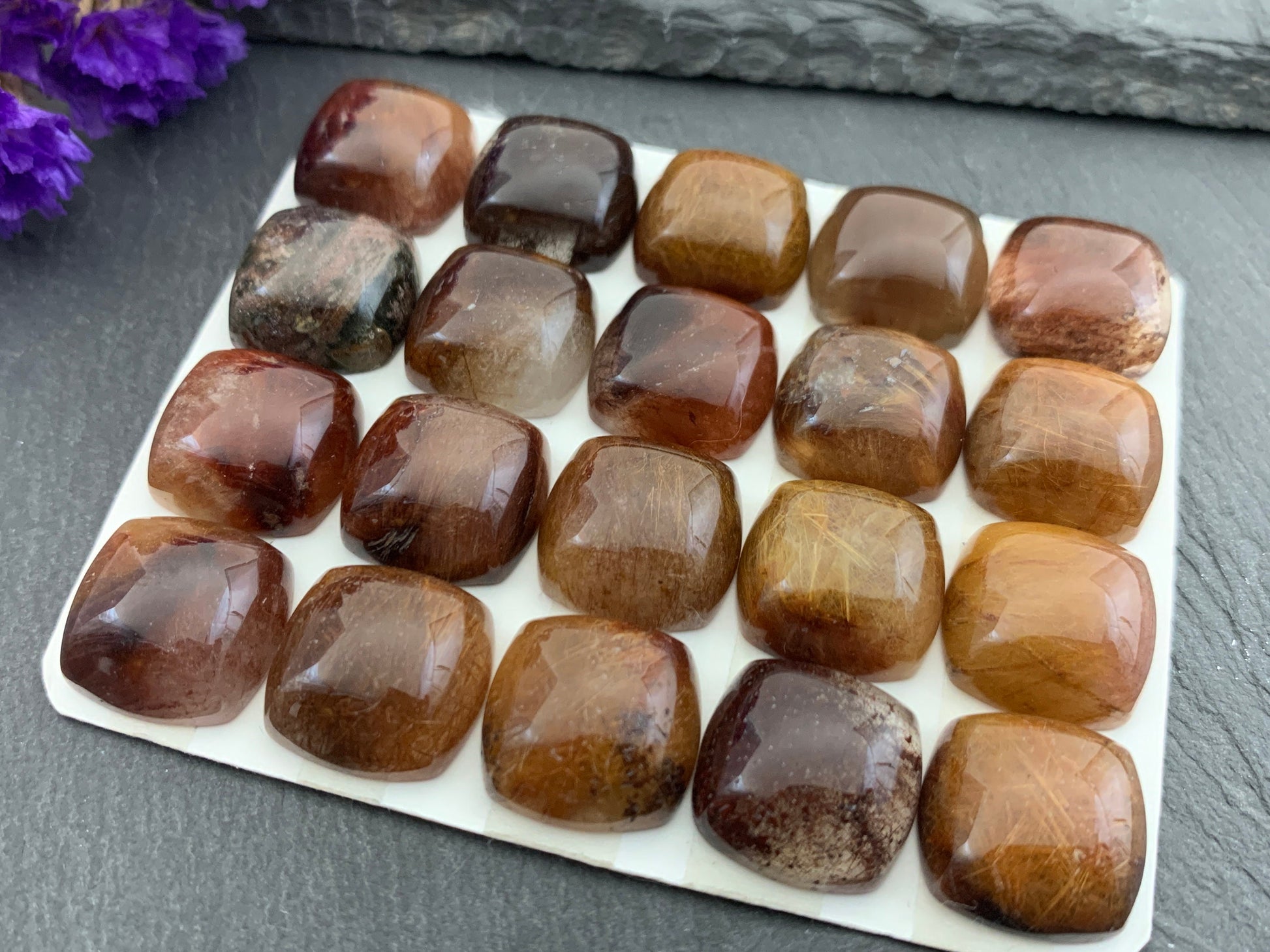 Rutilated Quartz square 15mm cabochon - Calibrated Rutilated Quartz