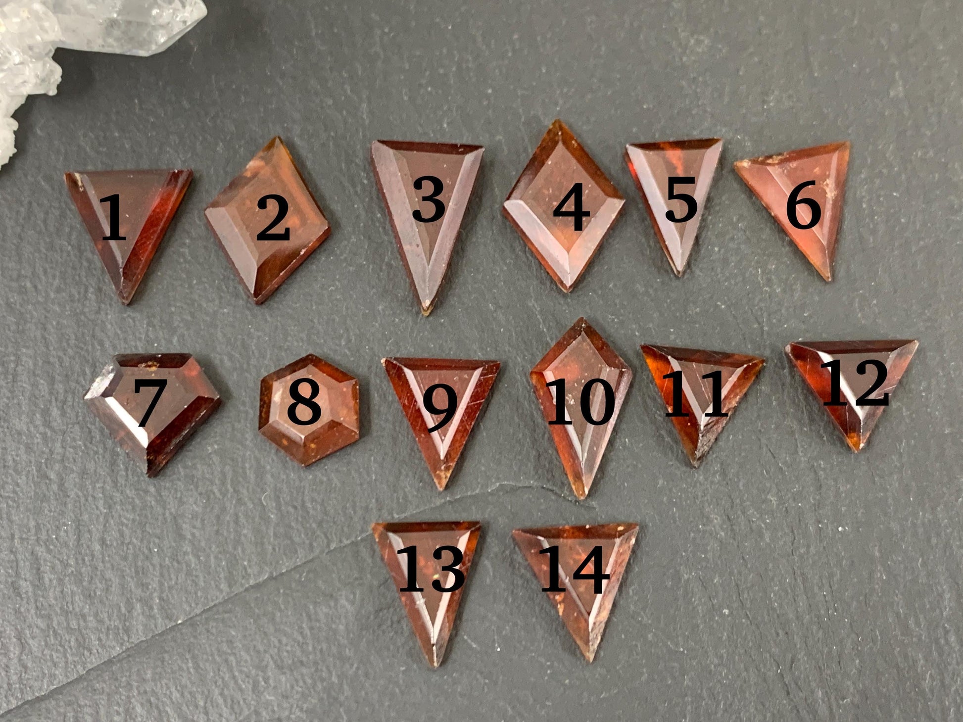 Shape: hexagon, kite, triangle, faceted top
