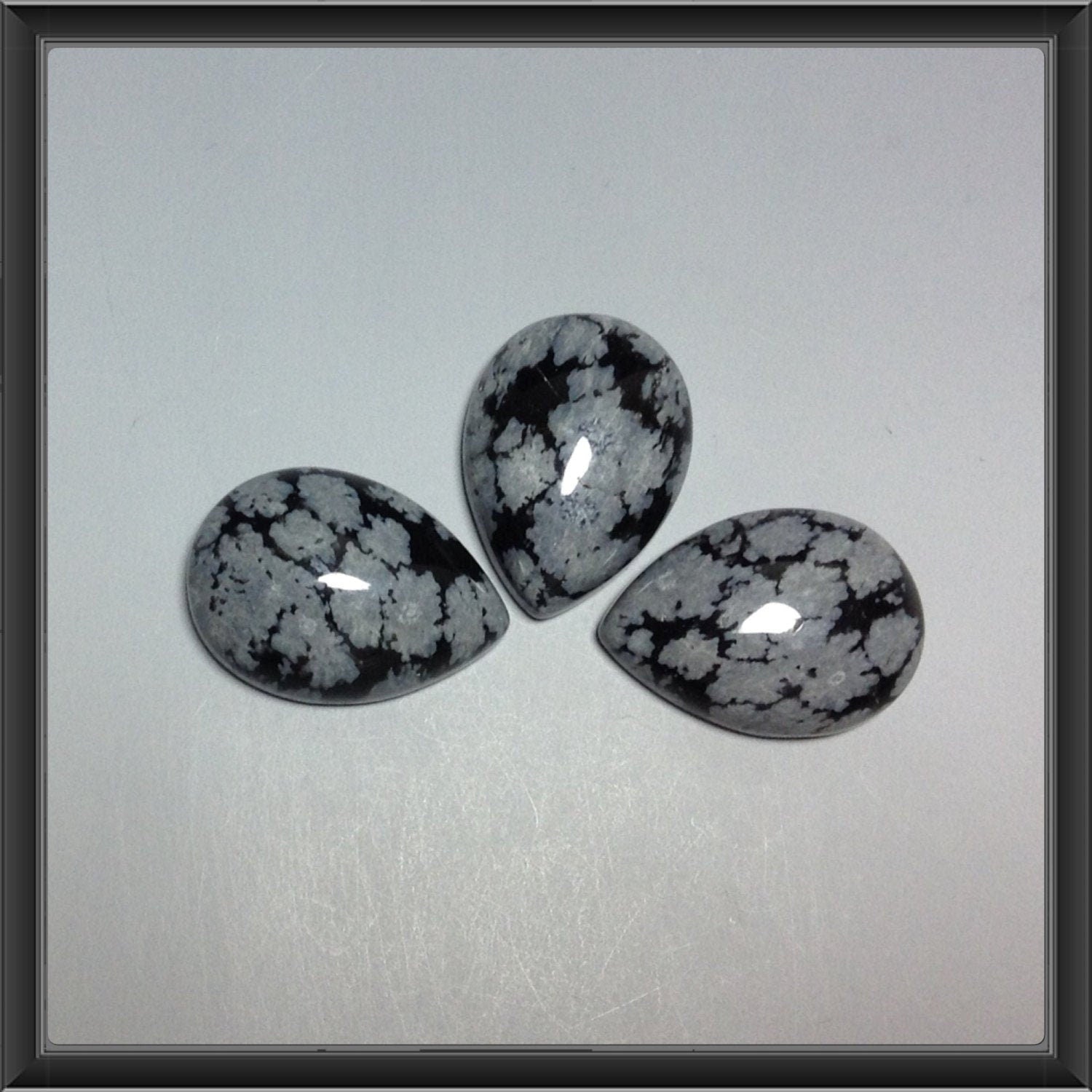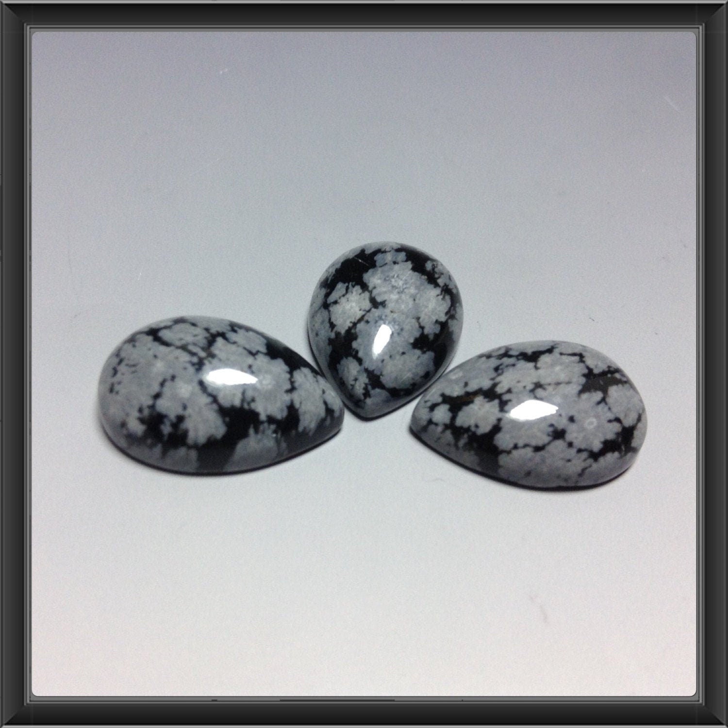 Snowflake Obsidian pear 13x18mm cabochon - Calibrate cabochons