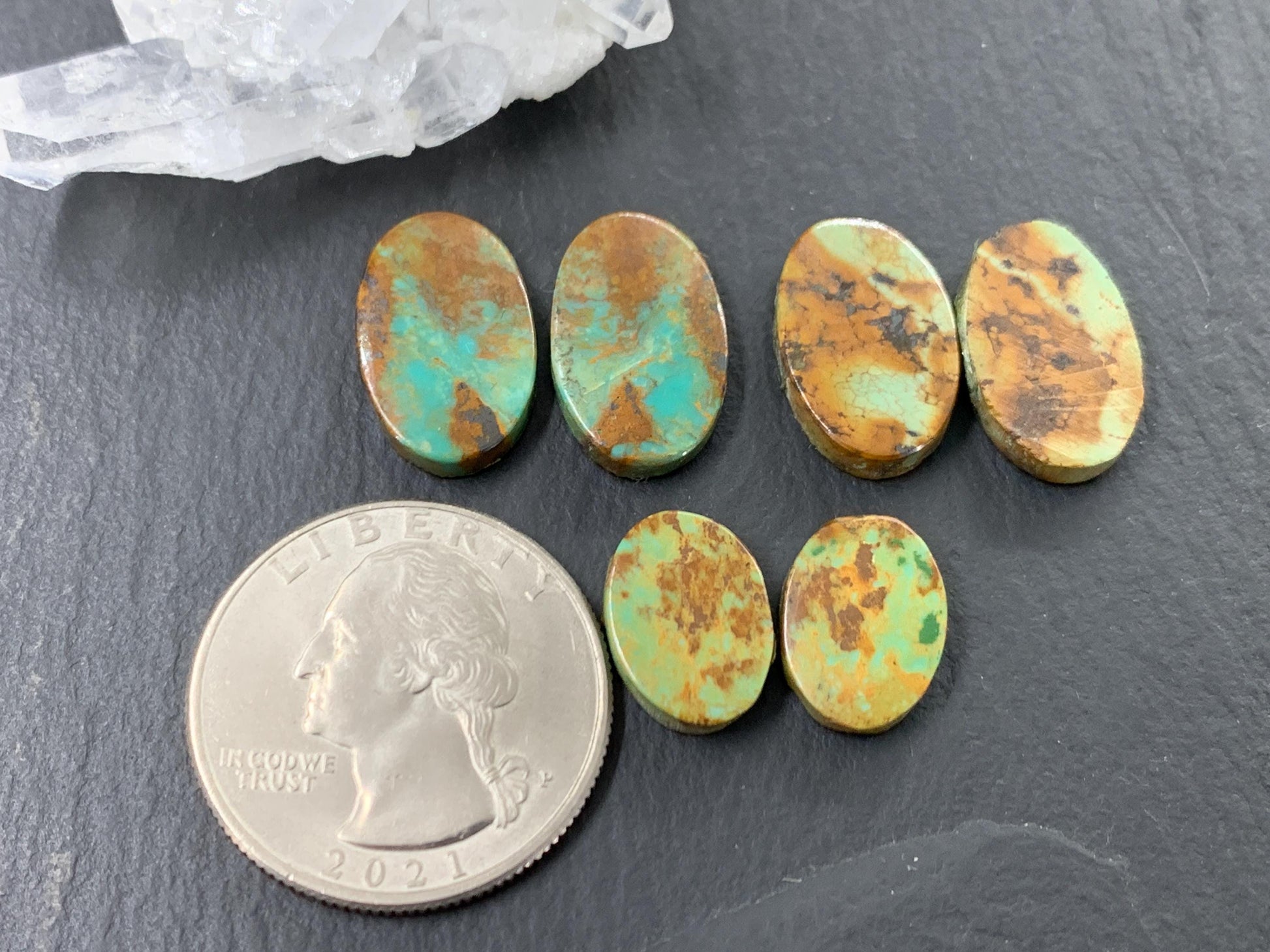 Tibetan Turquoise Oval Pair 12-16mm long Cabochon - Hand Cut Cabochon