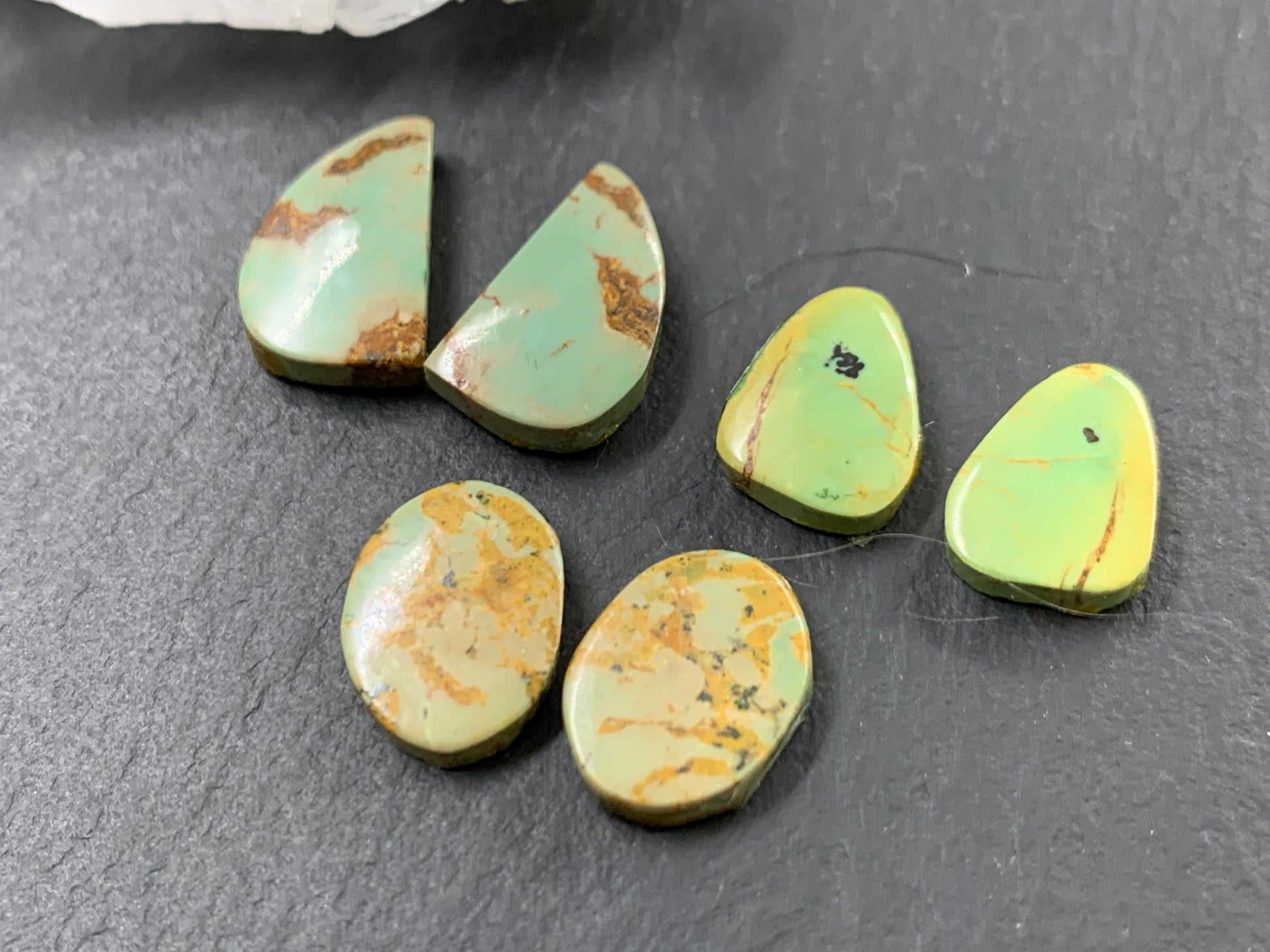 Tibetan Turquoise Pair 11-14mm long Cabochon - Hand Cut Cabochon