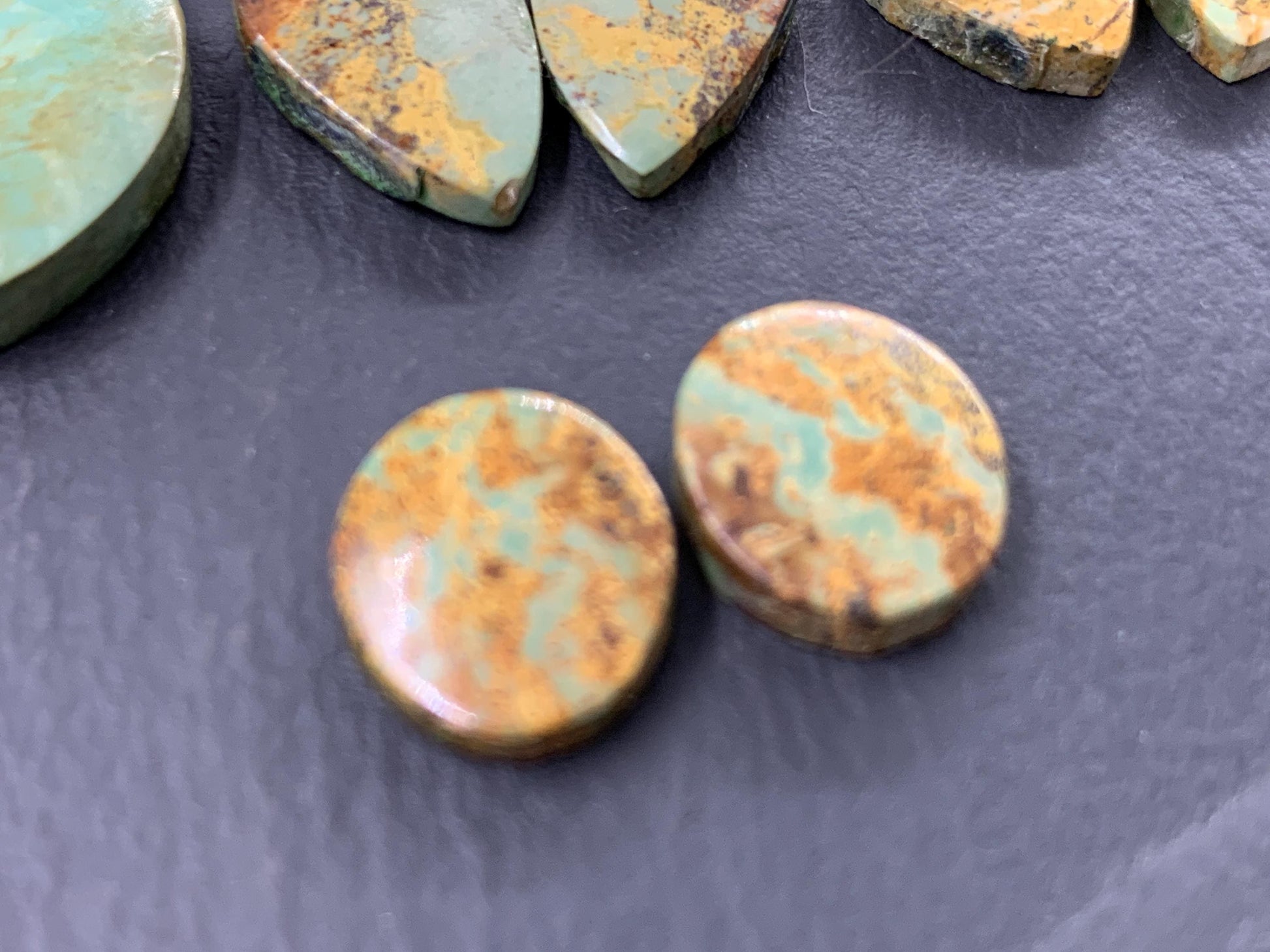 Tibetan Turquoise Pair 12-16mm long Cabochon - Hand Cut Cabochon