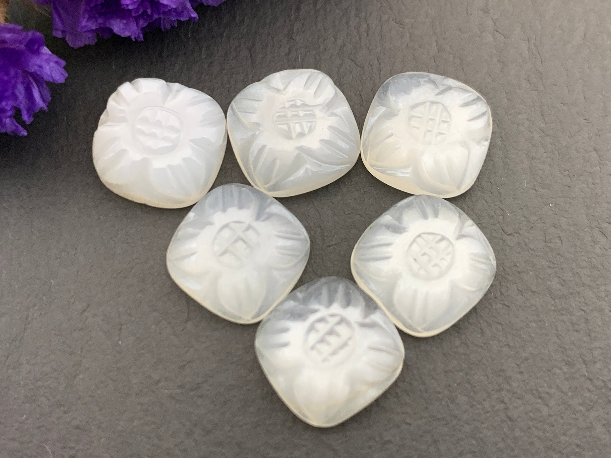 White Moonstone carved square cushion 10mm cabochon