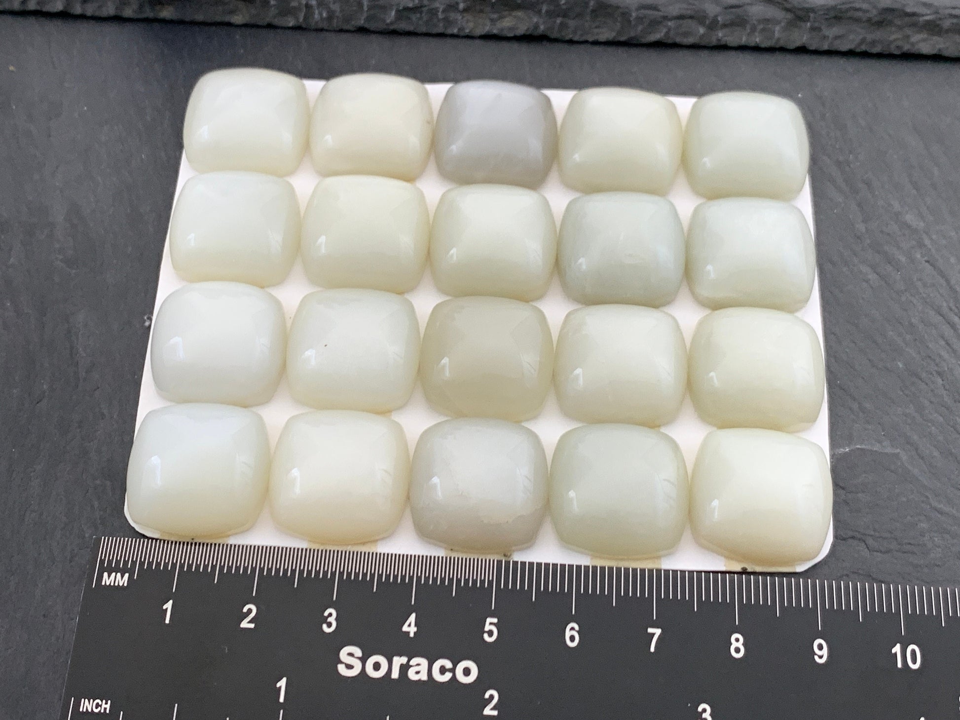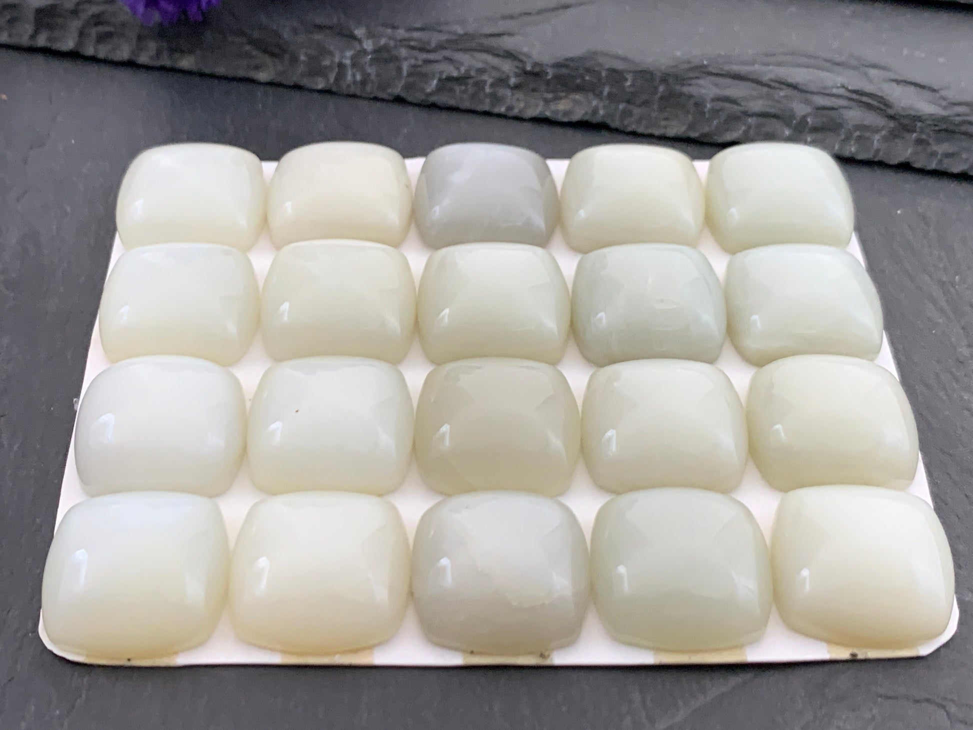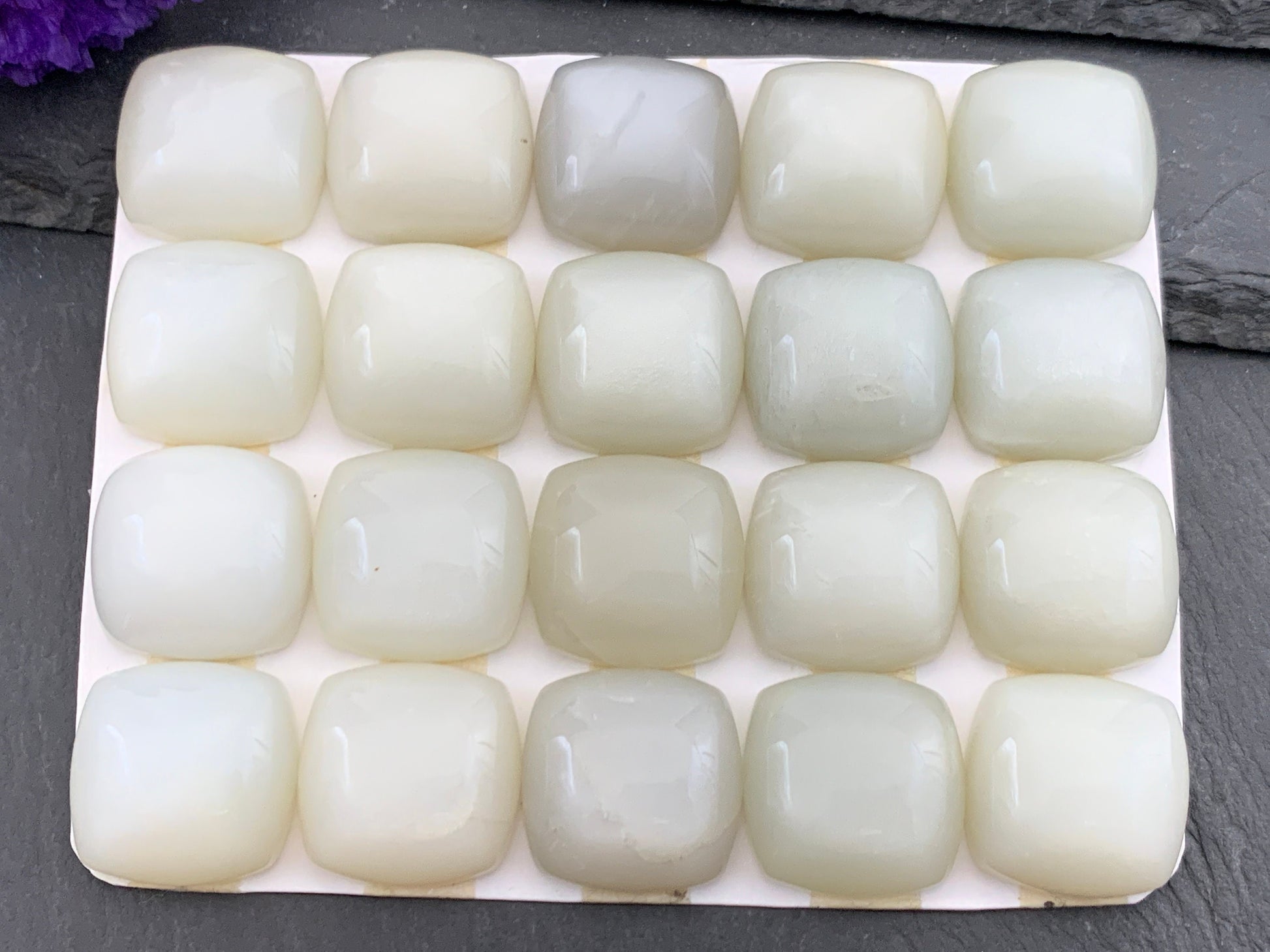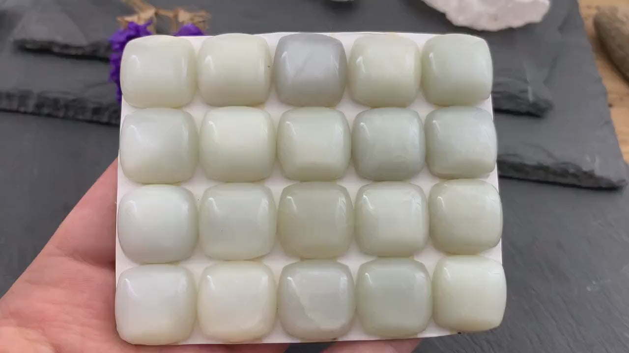 White Moonstone square cushion 18mm cabochon - Calibrated cabochons